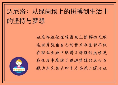 达尼洛:从绿茵场上的拼搏到生活中的坚持与梦想